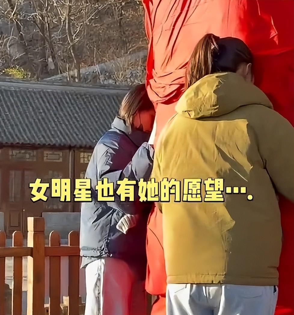最近刷到任素汐的消息,真是一言难尽。有人在大孤山偶遇她,裹得严严实实,藏青外套、灰帽子、黑口罩,还抱着一棵裹红布的古树默默许愿——这画面既虔诚又有点心事重重。